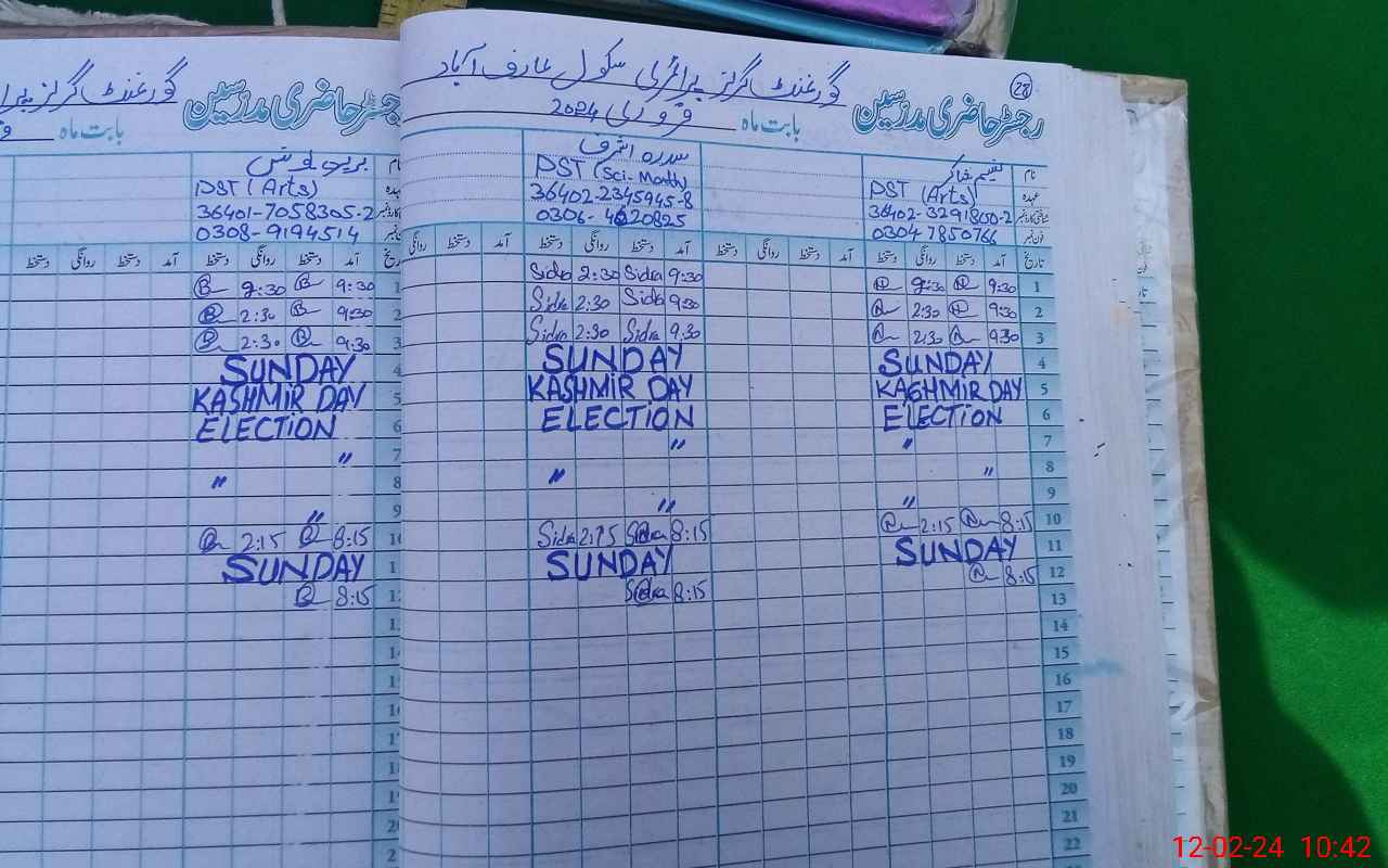 | CNIC | Full Name | Designation | R/C | Absence During Last Calender Month |