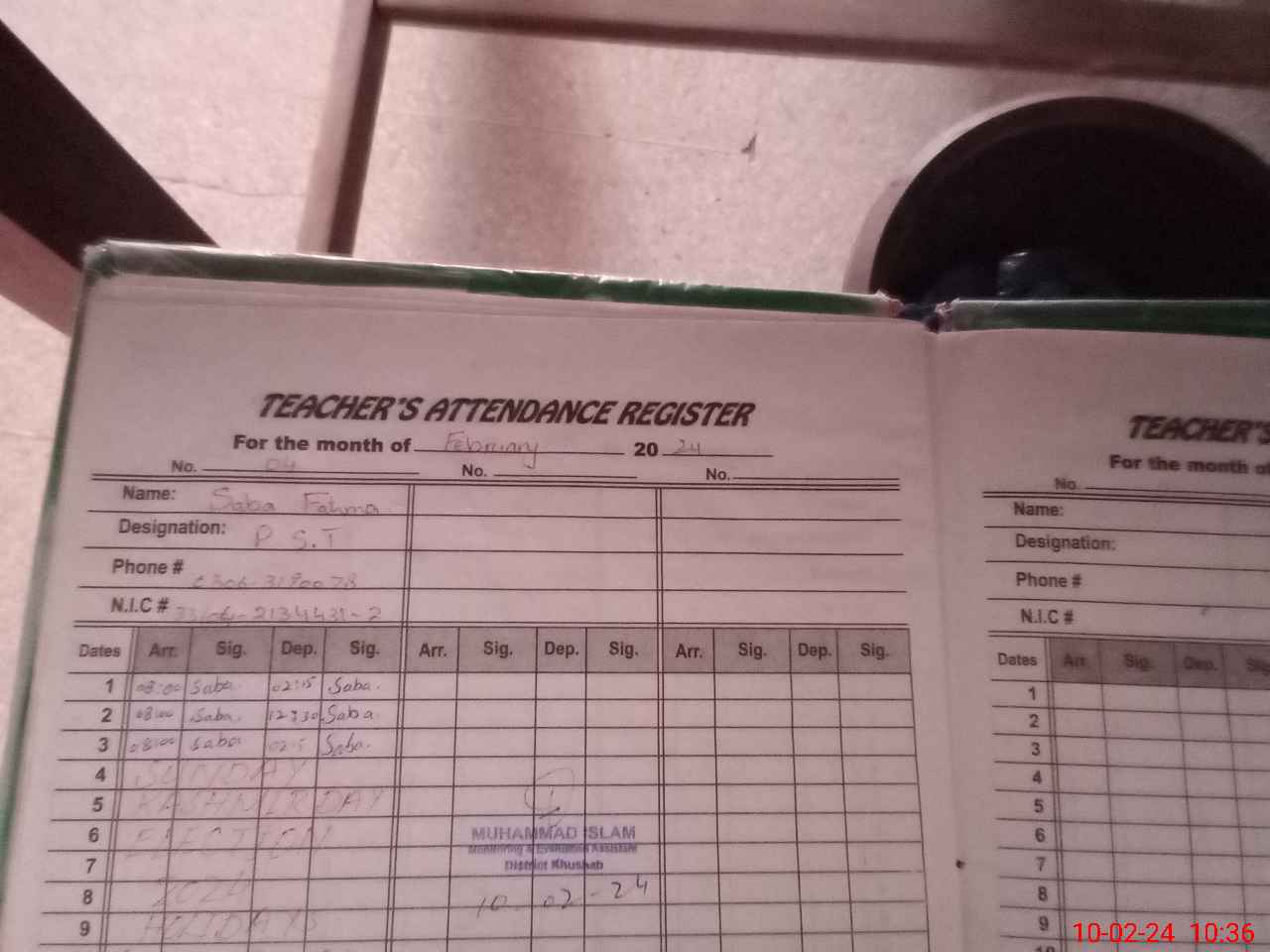 | Name: Ja**** Ko**** Designation: (School Headmaster's/Headmistress's) PST Phone/Cell Number: 03**** |