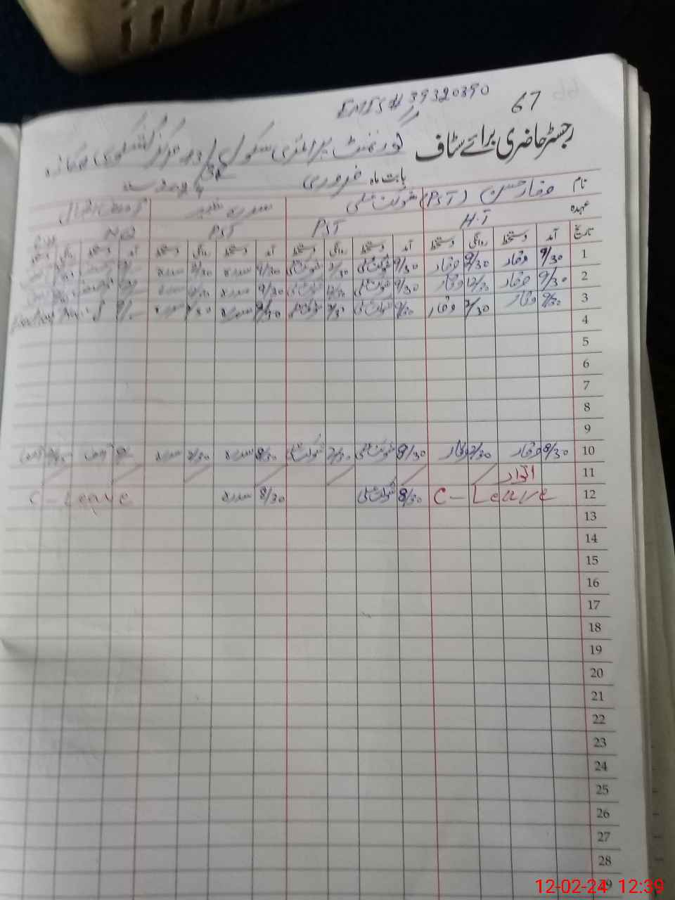 | CNIC | Full Name | Designation | R/C | Absence During Last Calender Month |