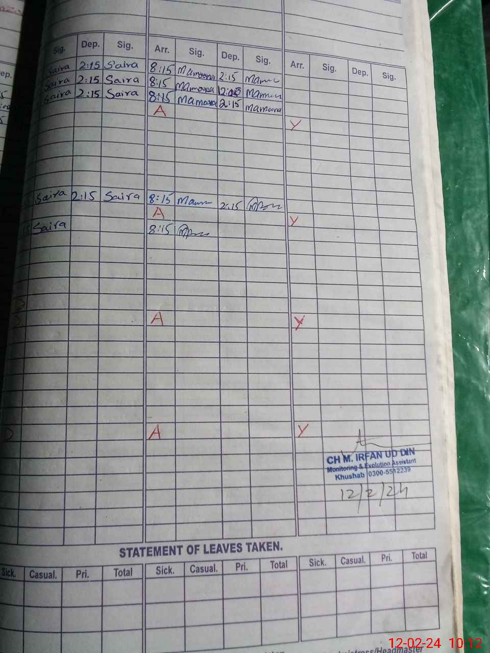 | Attendance Register | Head Teacher | MEA with School | Visit Proof |