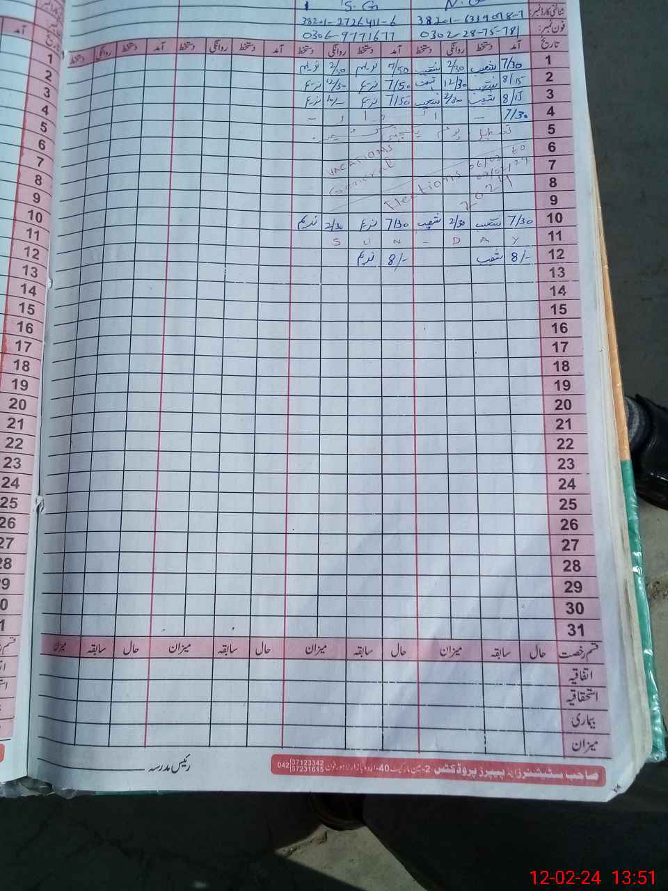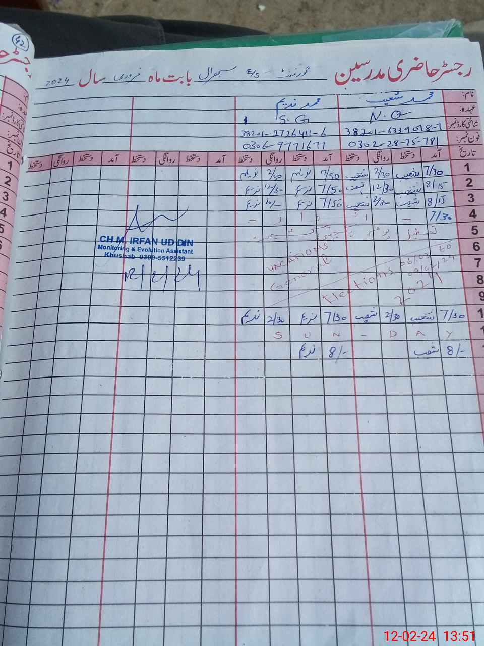 | CNIC | Full Name | Designation | R/C | Absence During Last Calender Month |