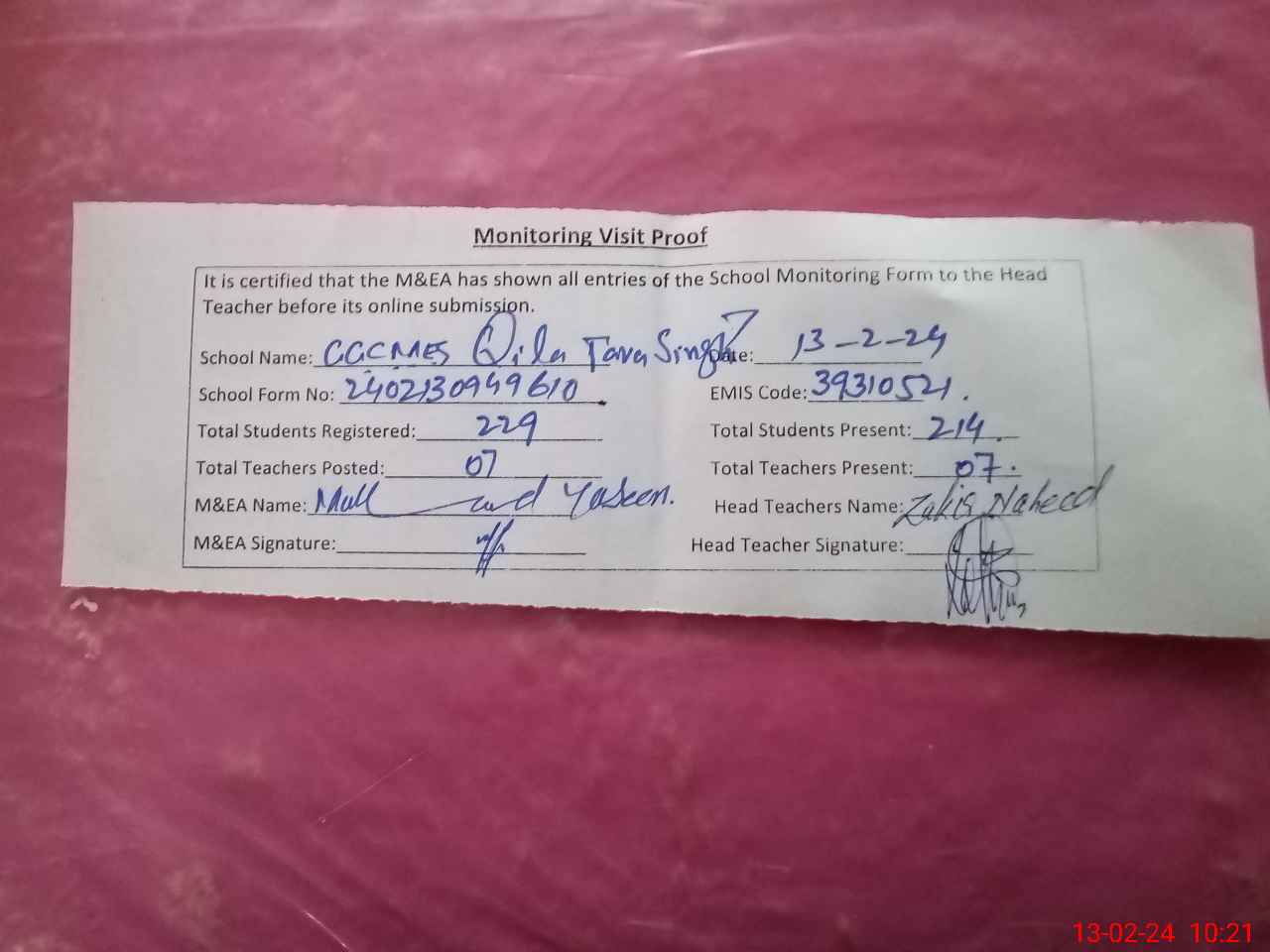 | EMIS Code: 39310521 | Name of School: GGCMS QILA TARA SINGH | |||