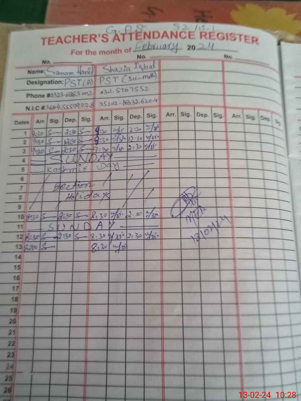 | Name: SH**** IQ**** Designation: (School Headmaster's/Headmistress's) PST Phone/Cell Number: 03**** |