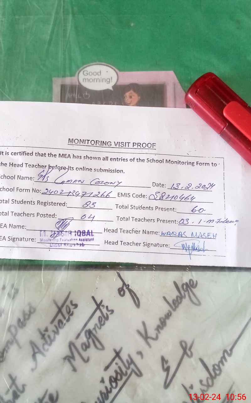 | EMIS Code: 38210464 | Name of School: GPS ZAMAN COLONY | |||