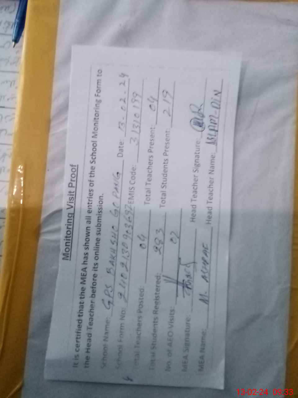 | EMIS Code: 31310199 | Name of School: GPS BAKHSHO GOPANG (After Noon) | |||