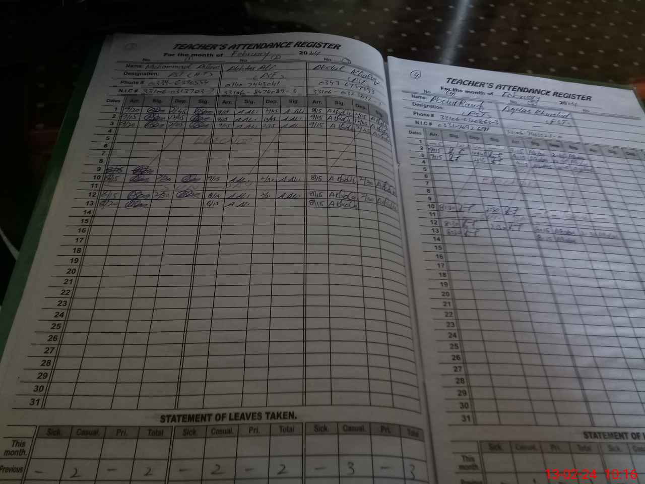 | Name: AB**** RA**** Designation: (School Headmaster's/Headmistress's) PST Phone/Cell Number: 03**** |