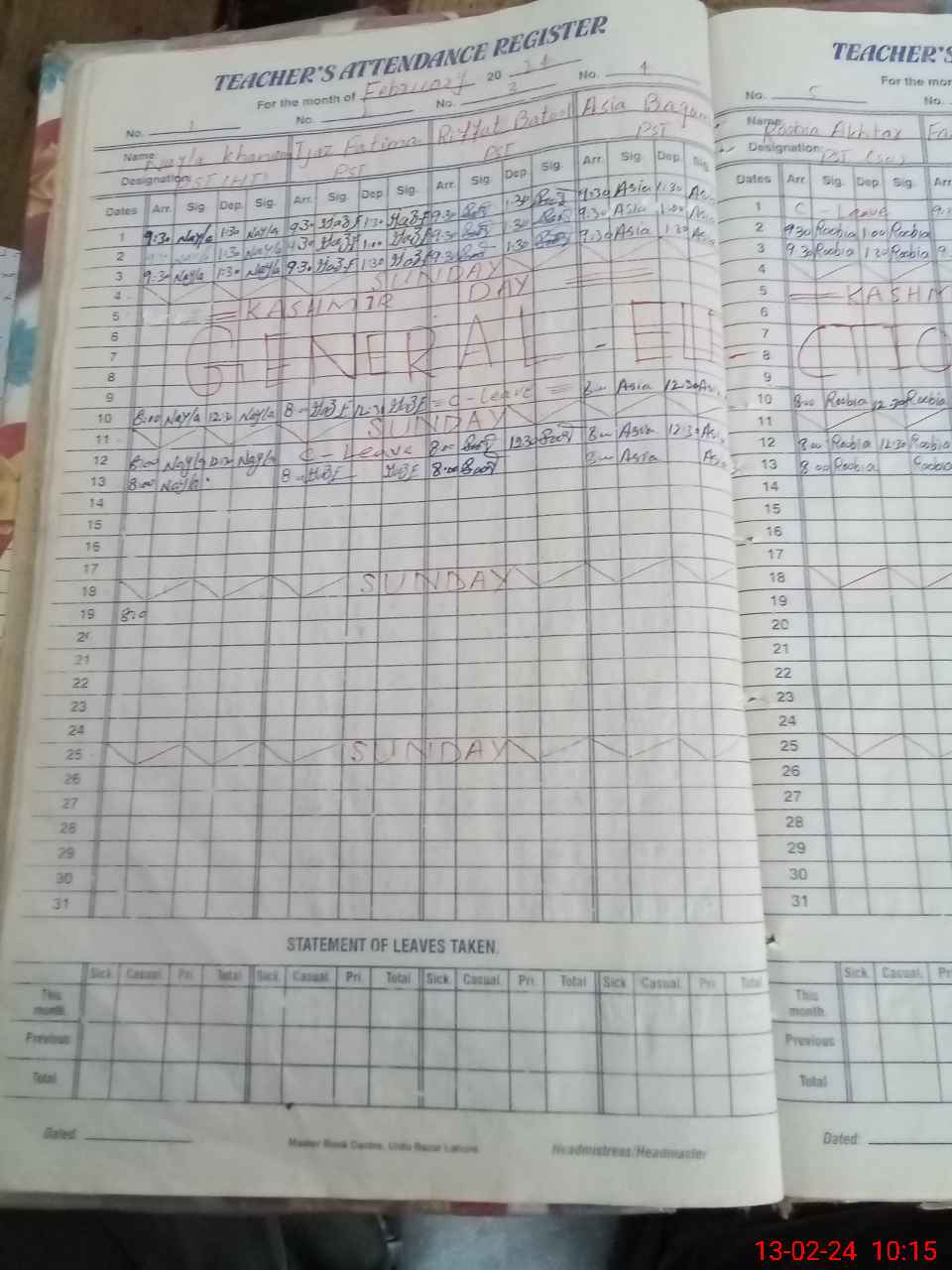 | Leave | Duty | Absent | Maternity | Medical | Ex- Pak |