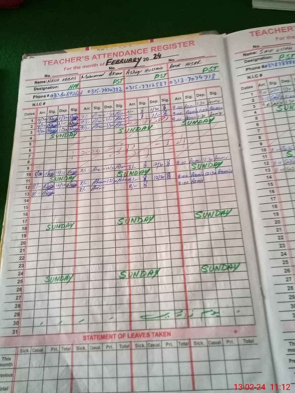 | Name: Na**** Ab**** Designation: (School Headmaster's/Headmistress's) PST Phone/Cell Number: 03**** |