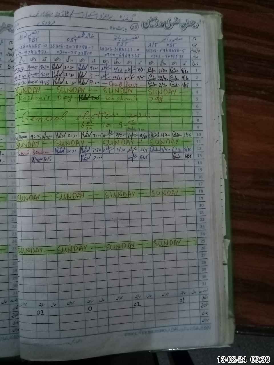 | CNIC | Full Name | Designation | R/C | Absence During Last Calender Month |