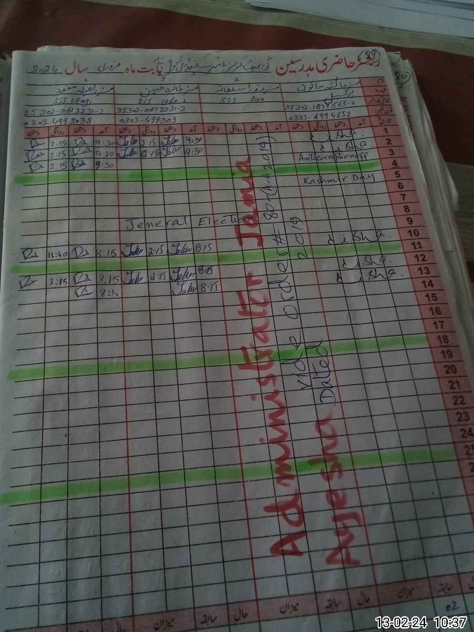 | Name: AI**** KH**** Designation: (School Headmaster's/Headmistress's) PRINCIPAL Phone/Cell Number: 03**** |