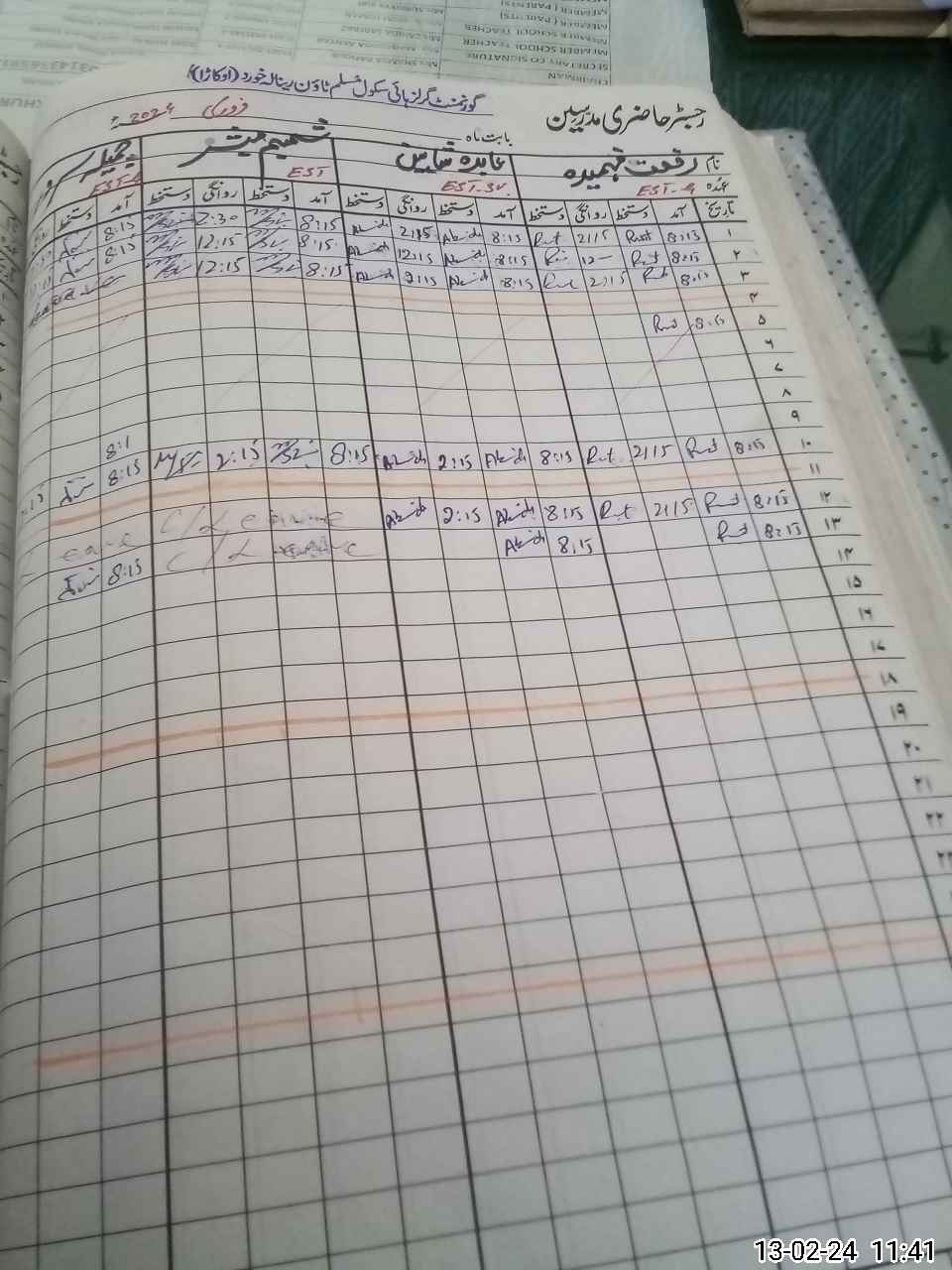 | CNIC | Full Name | Designation | R/C | Absence During Last Calender Month |