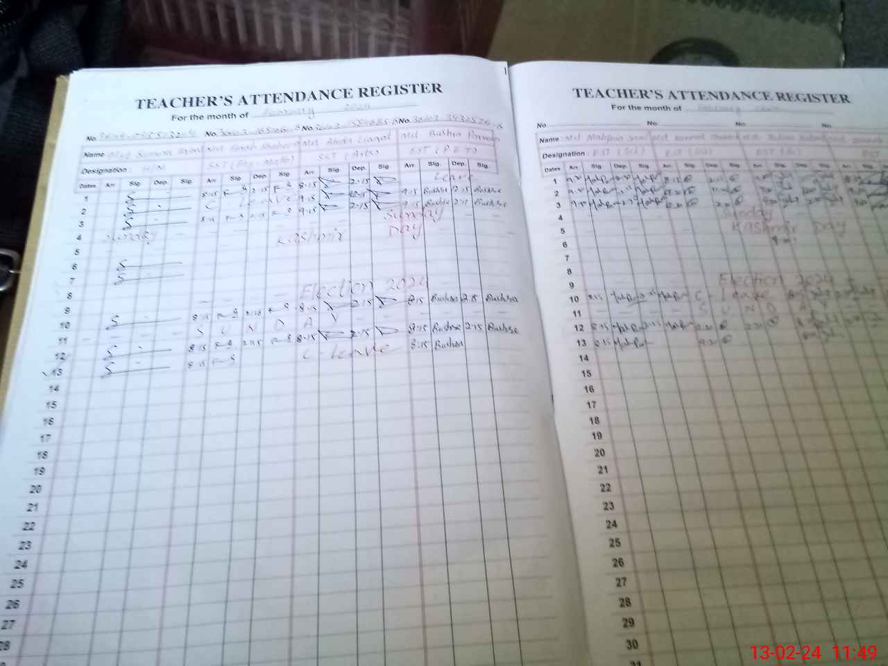 | CNIC | Full Name | Designation | R/C | Absence During Last Calender Month |