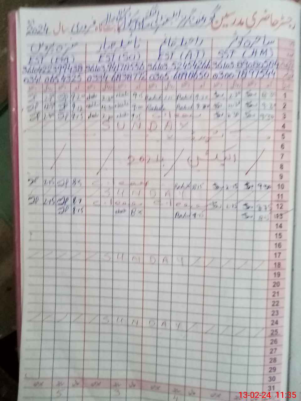 | CNIC | Full Name | Designation | R/C | Absence During Last Calender Month |