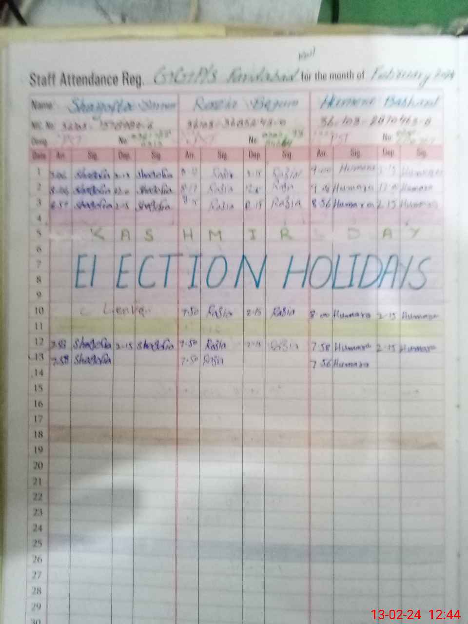 | Remarks (Use Separate Page if Required): During random attendance of 15 students listed students are promotted and left the school No aeo visit in last two months | |||||
