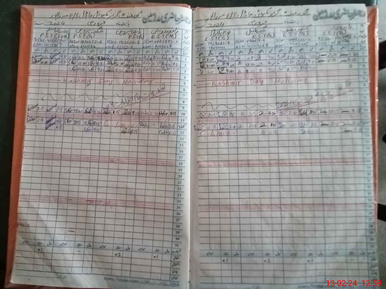 | CNIC | Full Name | Designation | R/C | Absence During Last Calender Month |