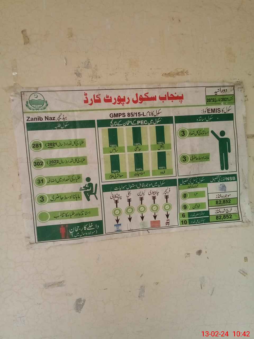 | EMIS Code: 36430335 | Name of School: GMPS 85/15-L, P/O 84/15-L, MIAN CHANNU | |||