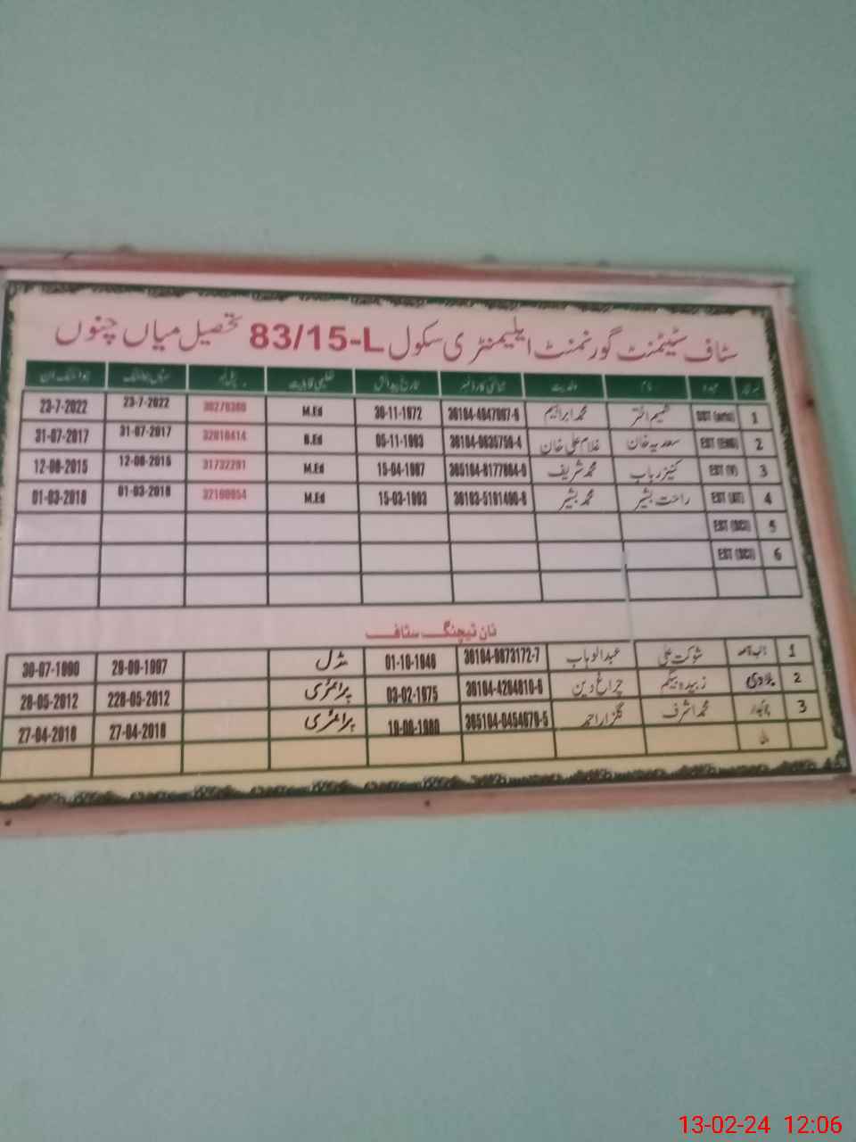 | EMIS Code: 36430091 | Name of School: GMES 83/15-L, MIAN CHANNU | |||