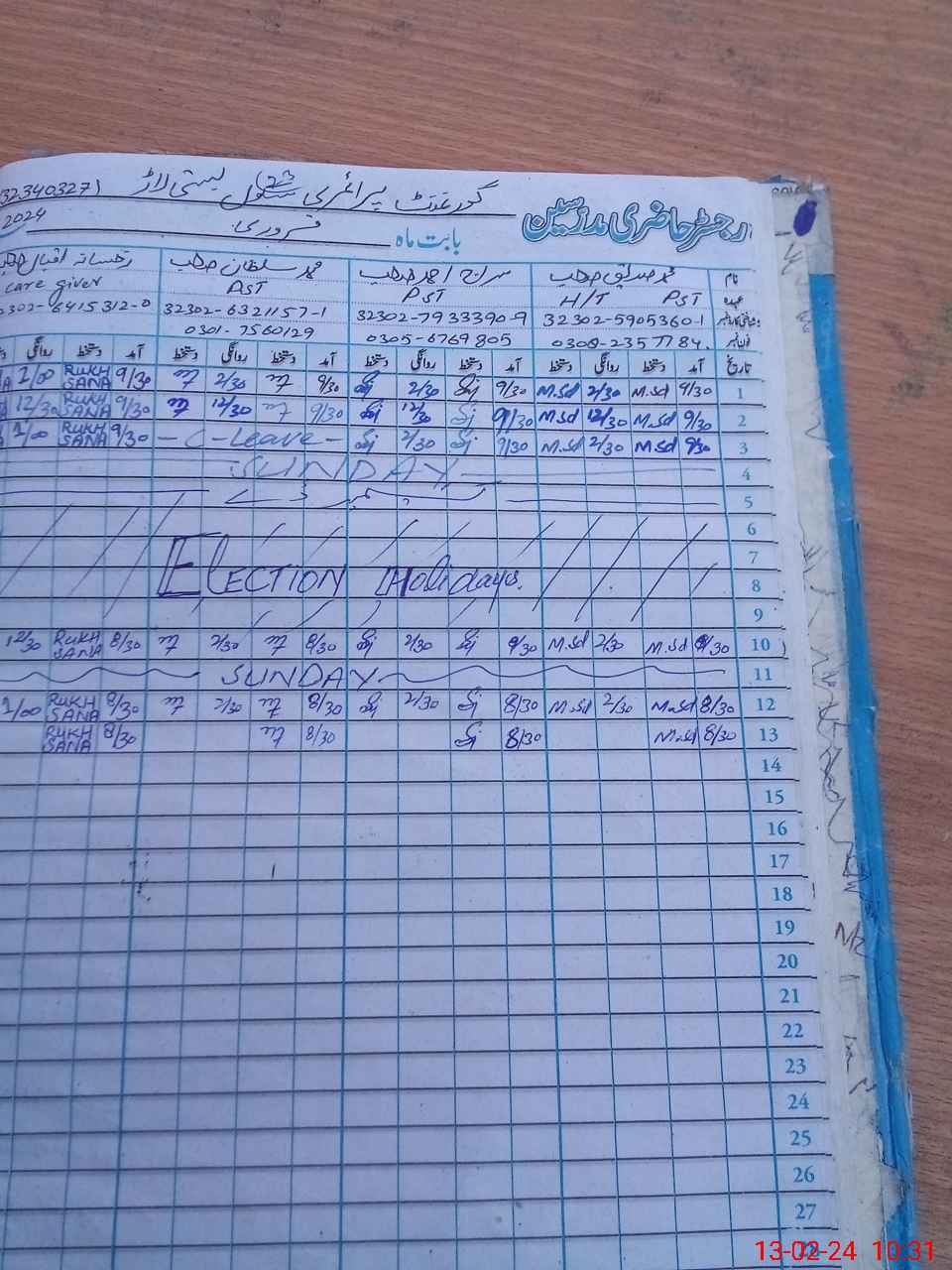 | CNIC | Full Name | Designation | R/C | Absence During Last Calender Month |