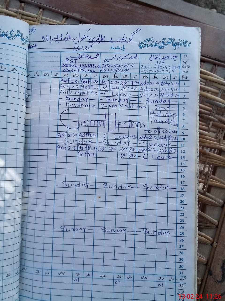 | CNIC | Full Name | Designation | R/C | Absence During Last Calender Month |