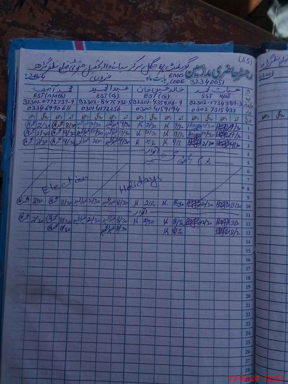 | Name: HA**** MU**** Designation: (School Headmaster's/Headmistress's) SST Phone/Cell Number: 03**** |