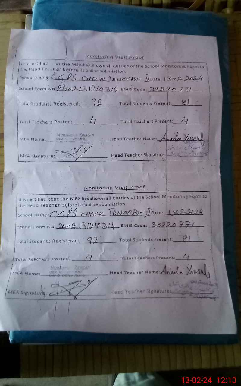 | EMIS Code: 33220771 | Name of School: GGPS CHAK JANOOBI NO 2 | |||