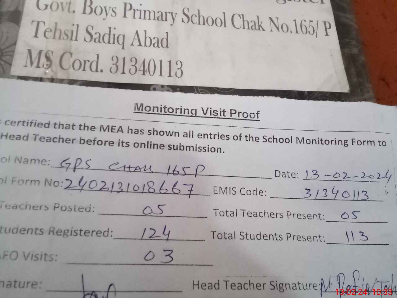 | EMIS Code: 31340113 | Name of School: GPS CHAK 165-P | |||