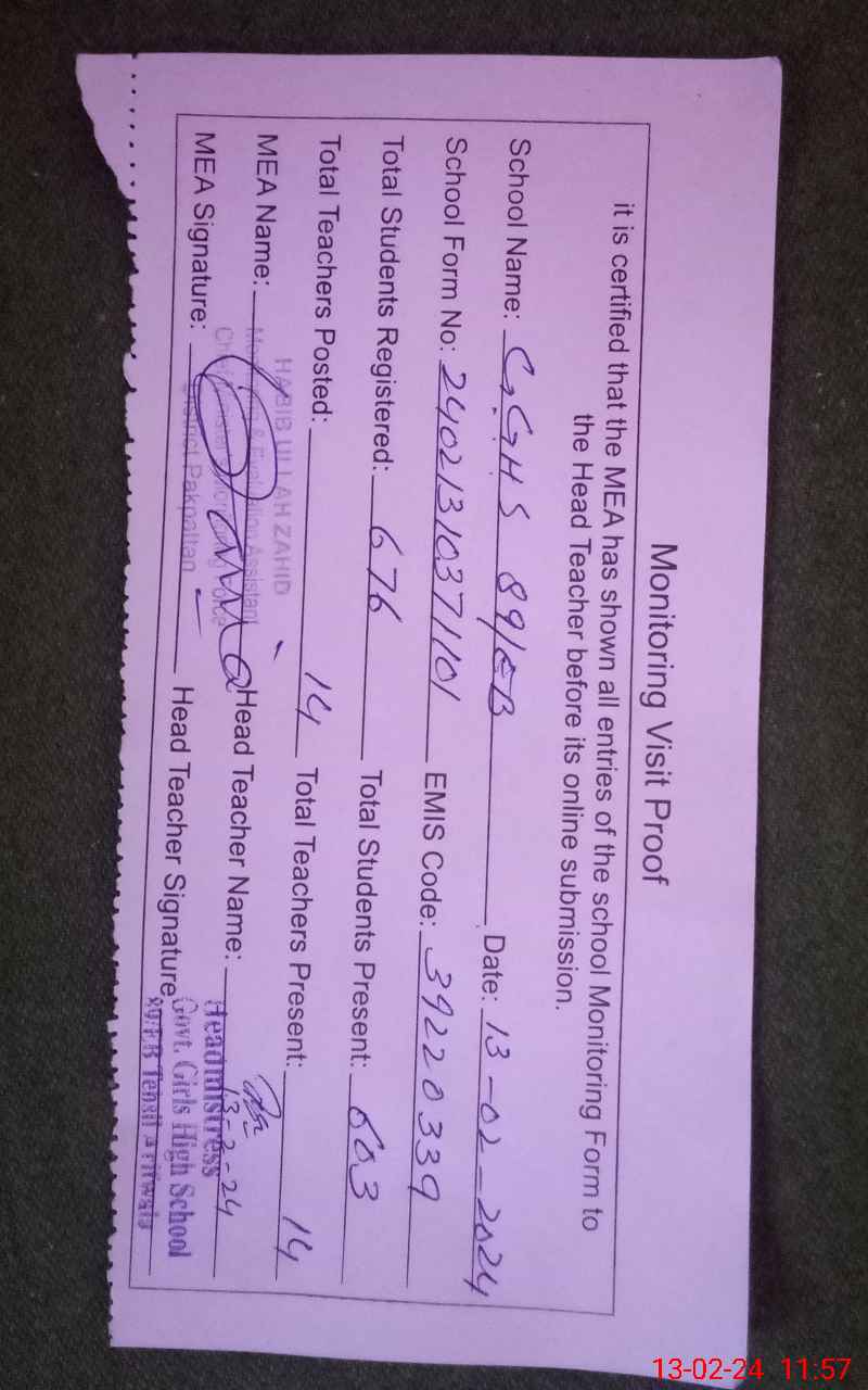 | EMIS Code: 39220339 | Name of School: GGHS 89/EB | |||