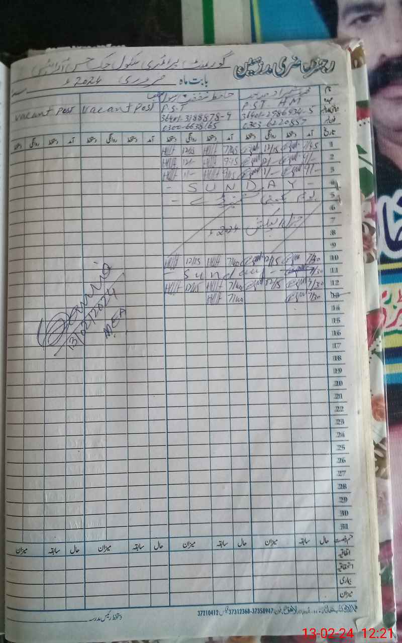 | Name: MU**** SH**** Designation: (School Headmaster's/Headmistress's) PST Phone/Cell Number: 03**** |