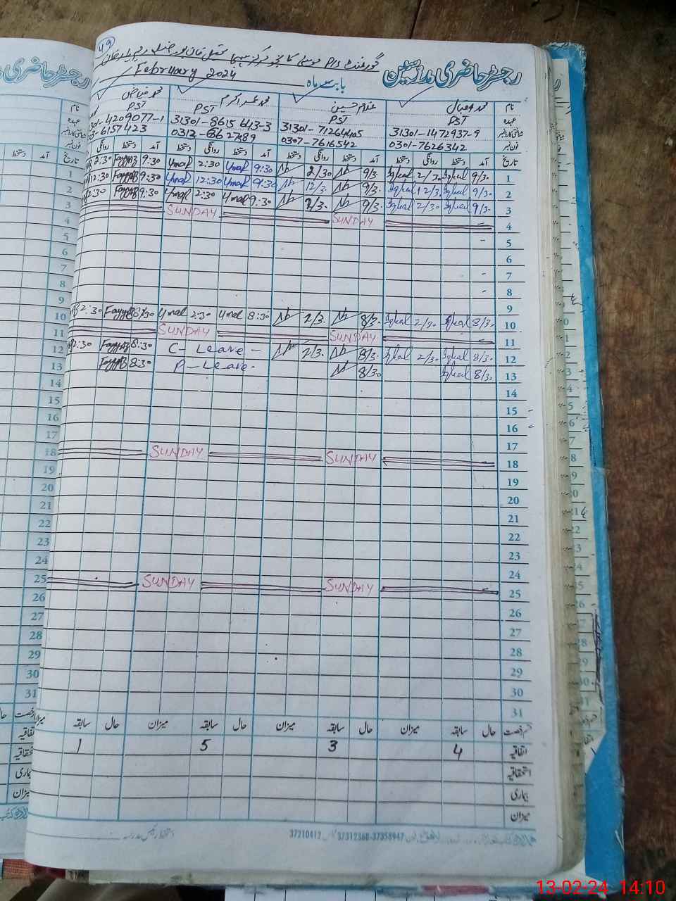 | CNIC | Full Name | Designation | R/C | Absence During Last Calender Month |