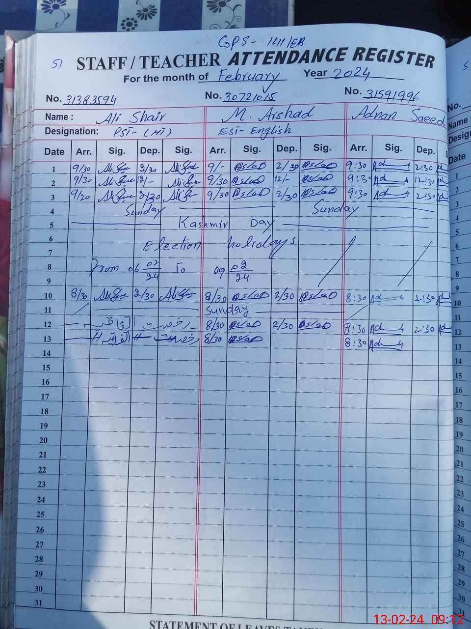 | Name: AL**** SH**** Designation: (School Headmaster's/Headmistress's) PST Phone/Cell Number: 03**** |