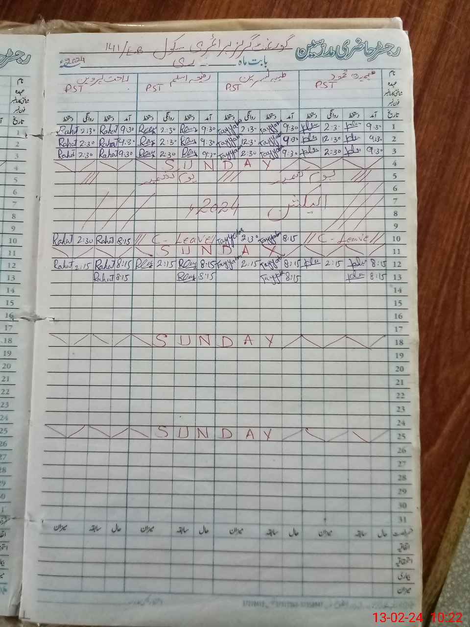 | CNIC | Full Name | Designation | R/C | Absence During Last Calender Month |