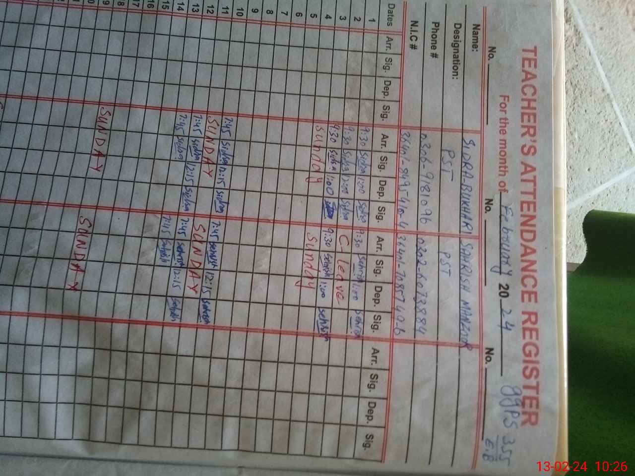 | Name: SE**** MA**** Designation: (School Headmaster's/Headmistress's) PST Phone/Cell Number: 03**** |