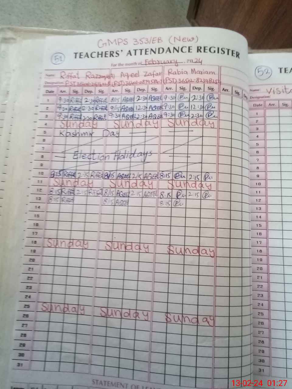 | Name: RI**** RA**** Designation: (School Headmaster's/Headmistress's) PST Phone/Cell Number: 03**** |