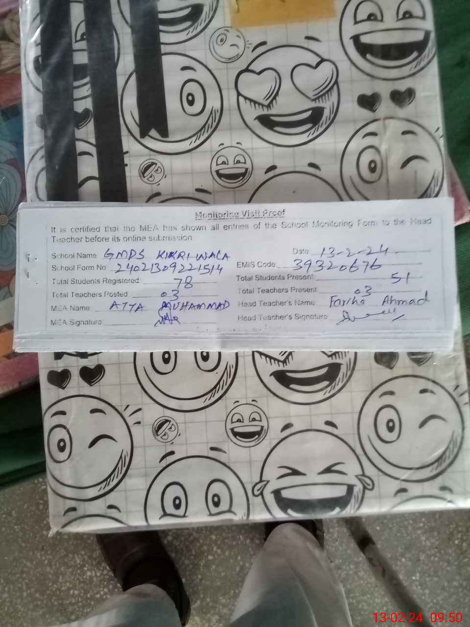 | Attendance Register | Head Teacher | MEA with School | Visit Proof |
