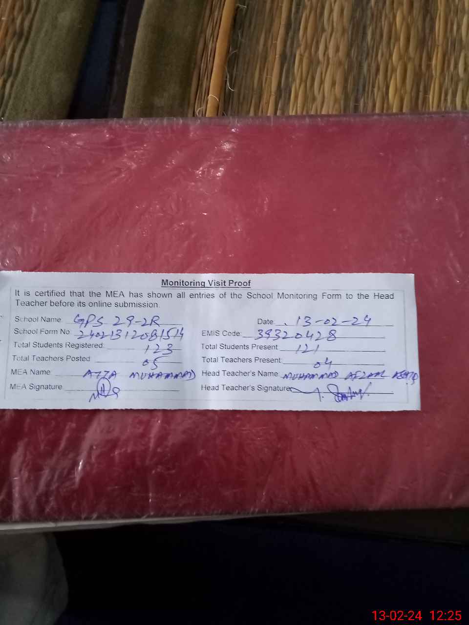 | EMIS Code: 39320428 | Name of School: GPS CHAK NO. 29/2-R | |||