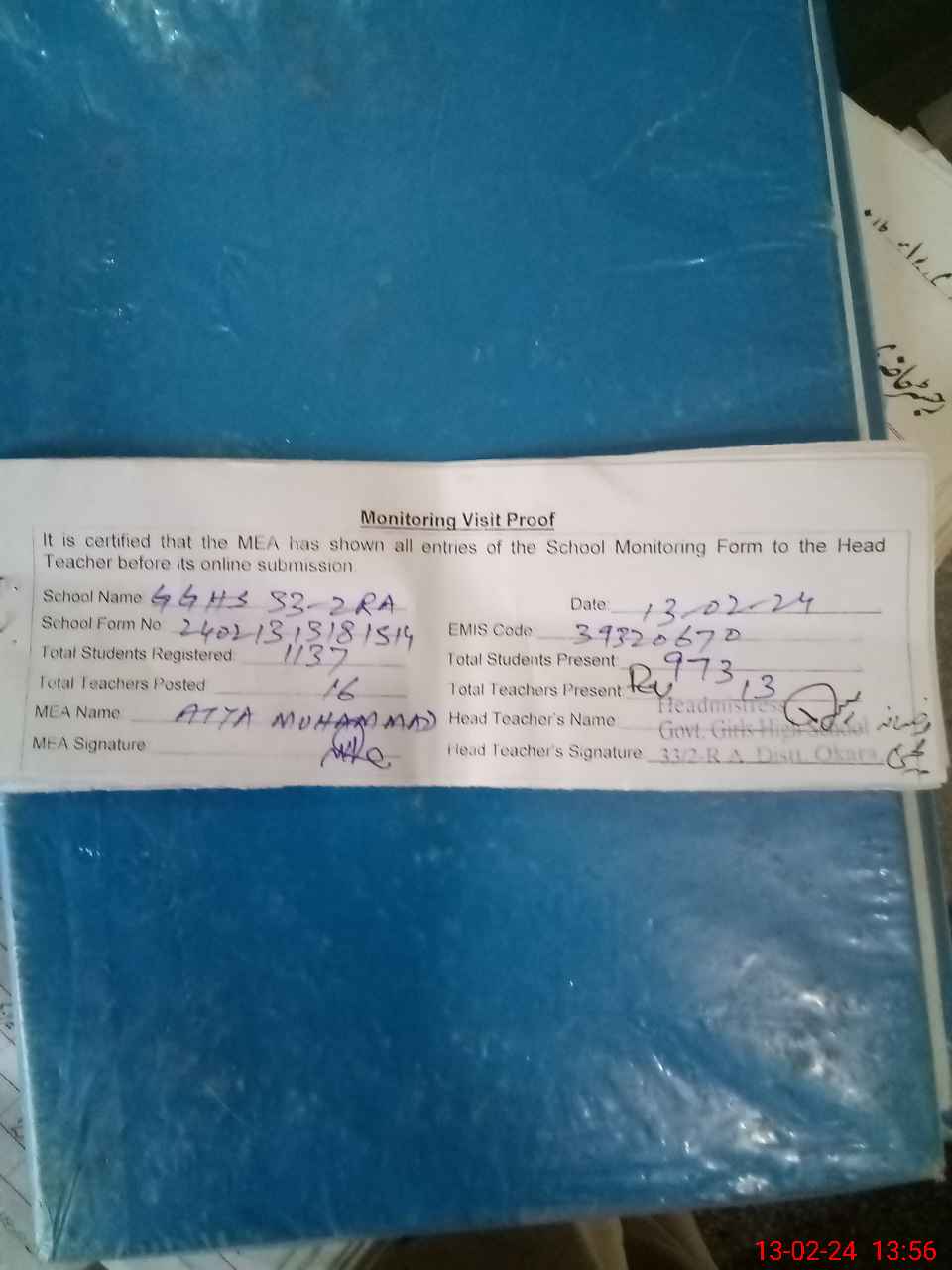 | EMIS Code: 39320670 | Name of School: GGHS 33/2-RA | |||