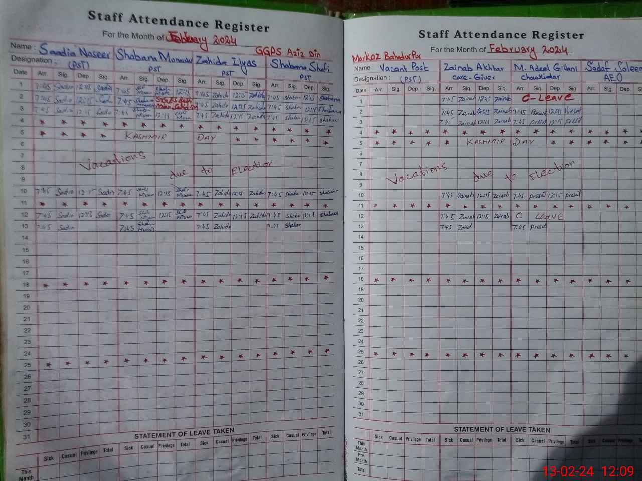 | Leave | Duty | Absent | Maternity | Medical | Ex- Pak |