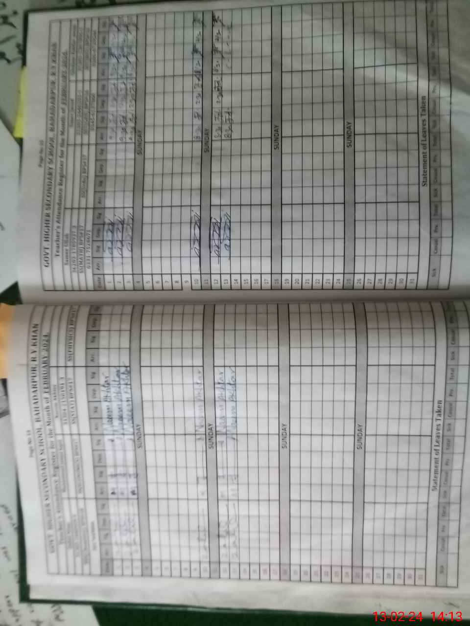 | CNIC | Full Name | Designation | R/C | Absence During Last Calender Month |