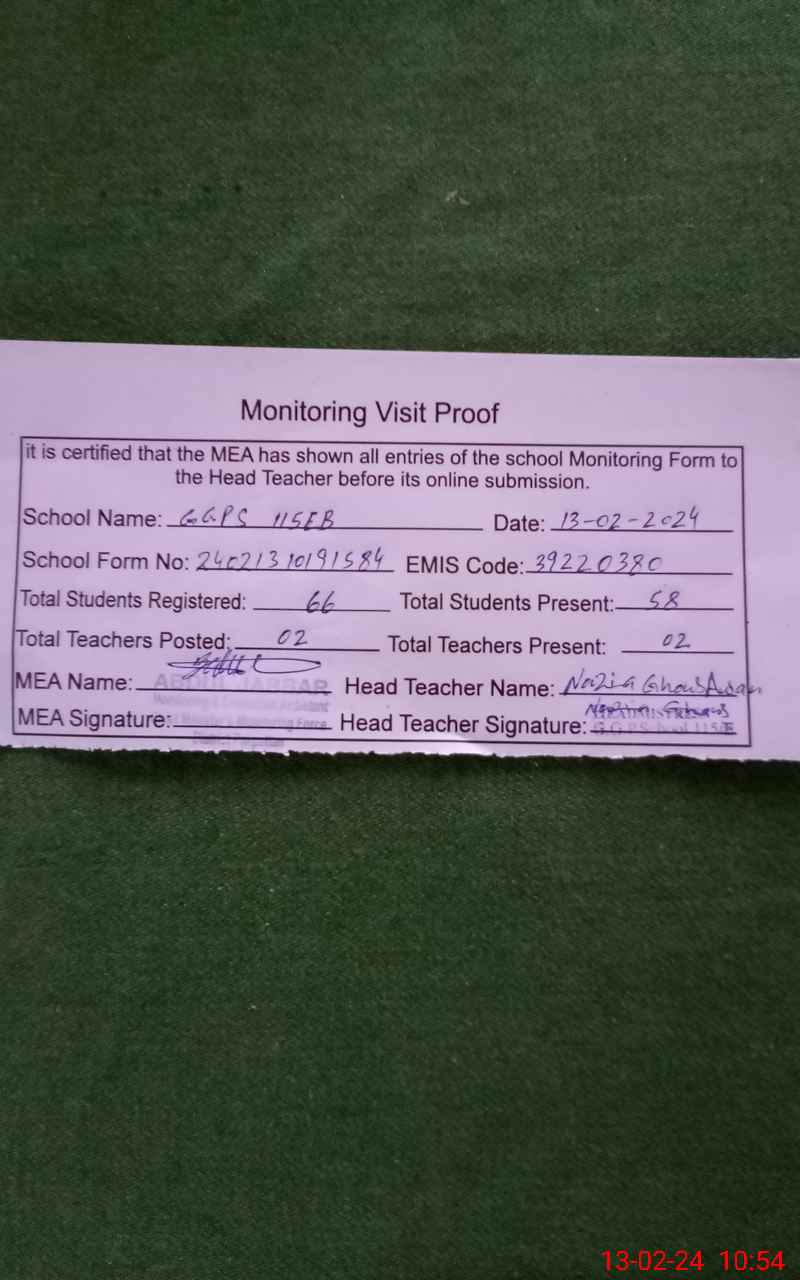 | EMIS Code: 39220380 | Name of School: GGPS 115 EB P/O THANA AHMAD YAR | |||