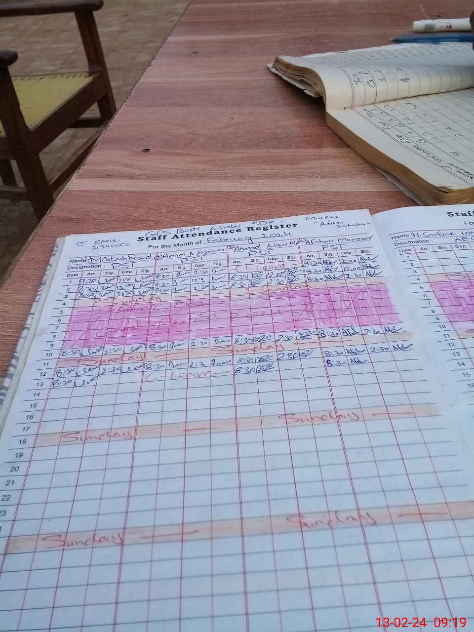 | CNIC | Full Name | Designation | R/C | Absence During Last Calender Month |