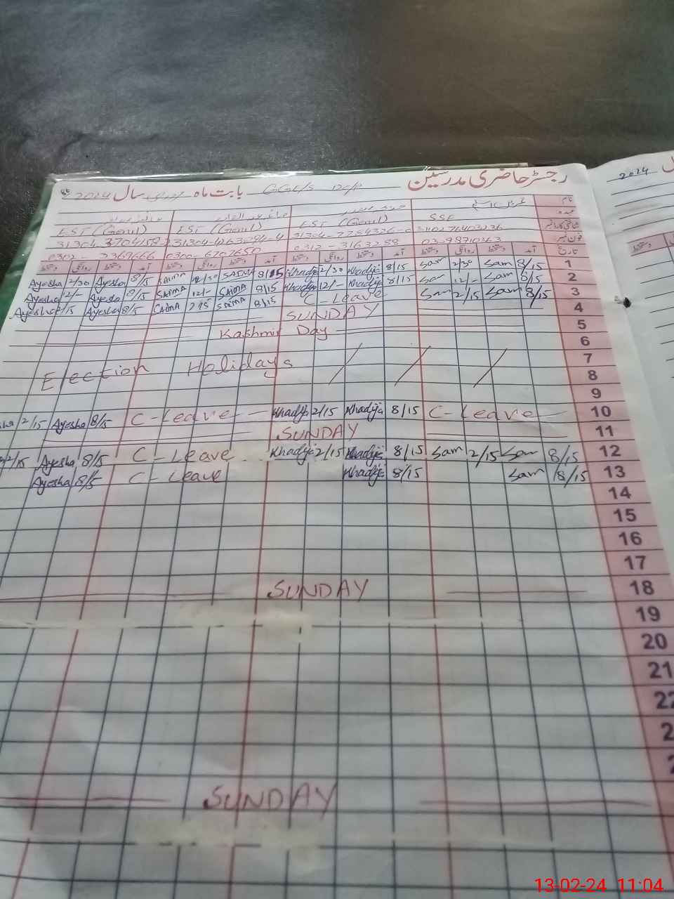 | 31**** | Na**** Kh**** | 3 | 1 | 0 | 0 | 0 | 0 | 0 | 0 | 0 | 0 | 0 | Absent (Un-Authorized) |