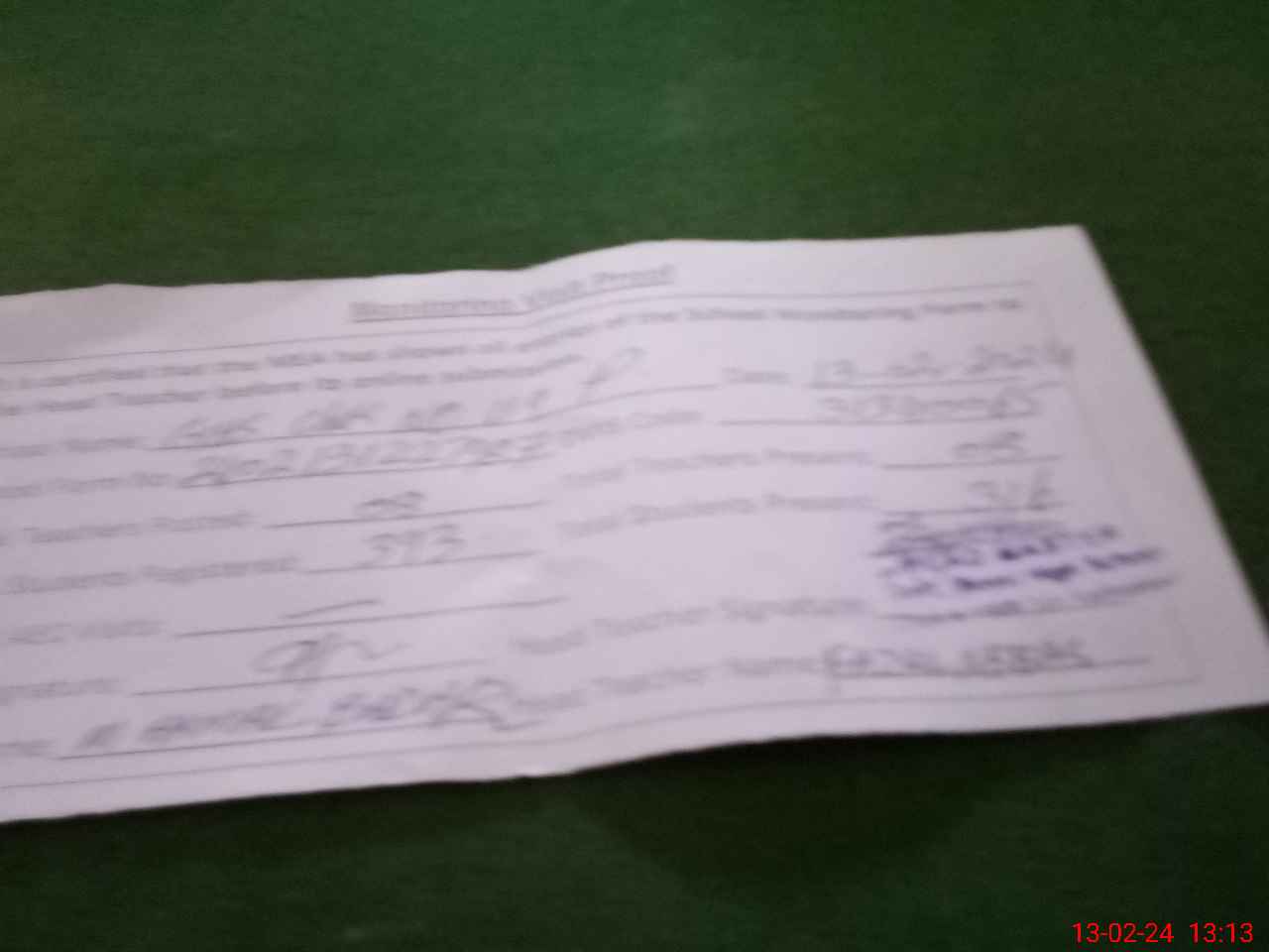 | Attendance Register | Head Teacher | MEA with School | Visit Proof |