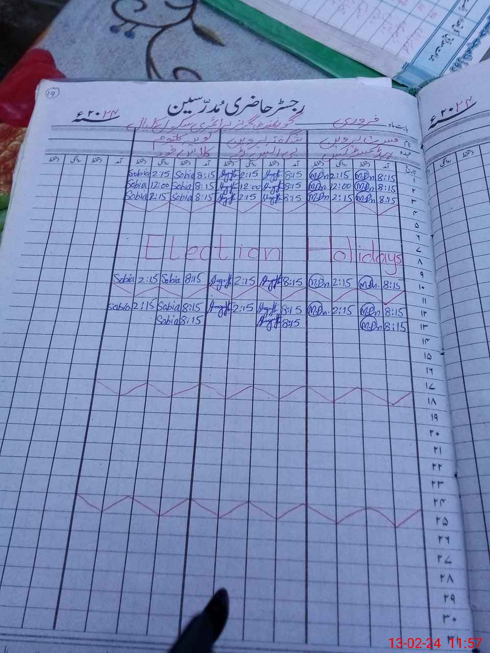 | CNIC | Full Name | Designation | R/C | Absence During Last Calender Month |