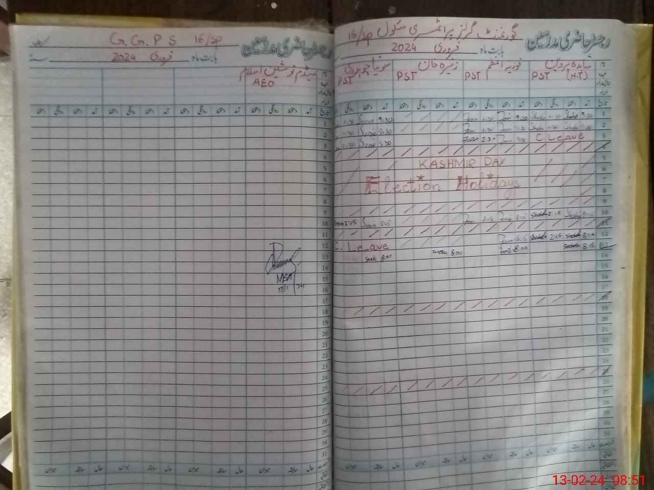 | Name: Zo**** Kh**** Designation: (School Headmaster's/Headmistress's) PST Phone/Cell Number: 03**** |