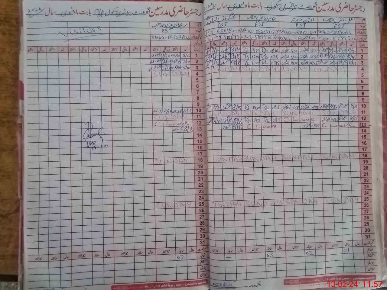 | CNIC | Full Name | Designation | R/C | Absence During Last Calender Month |