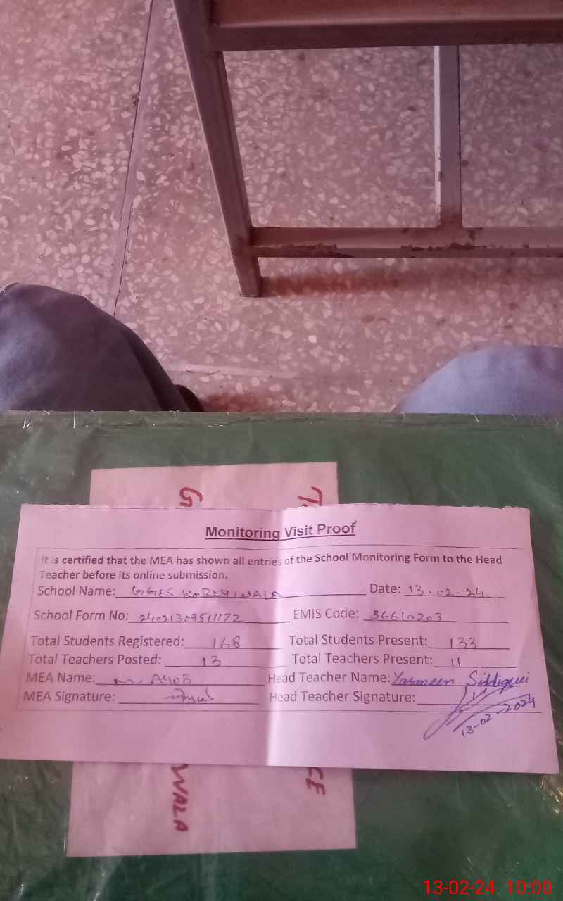 | EMIS Code: 36610203 | Name of School: GGES KOREY WALA | |||