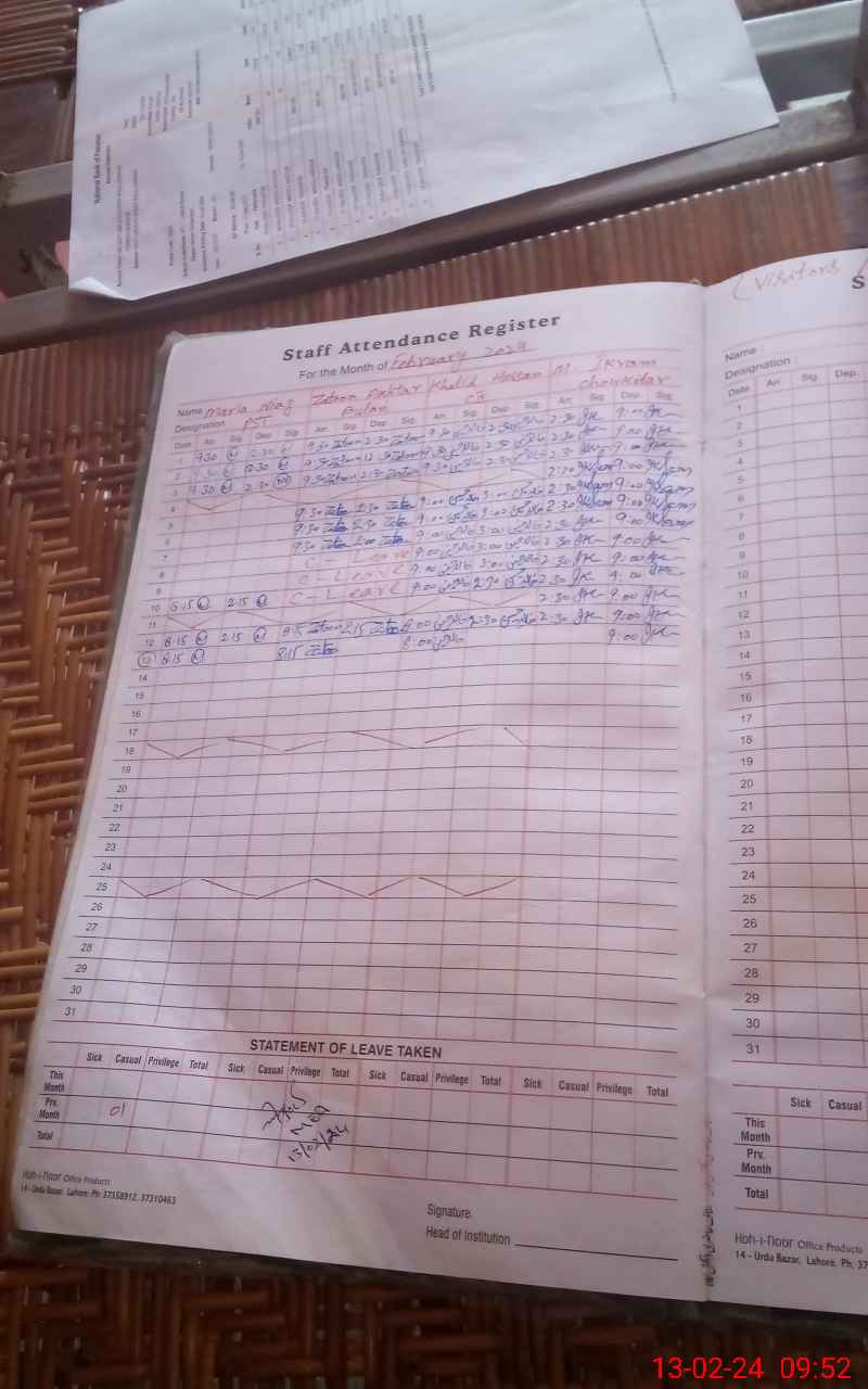 | Name: Za**** Mu**** Designation: (School Headmaster's/Headmistress's) ES T(IT) Phone/Cell Number: 03**** |