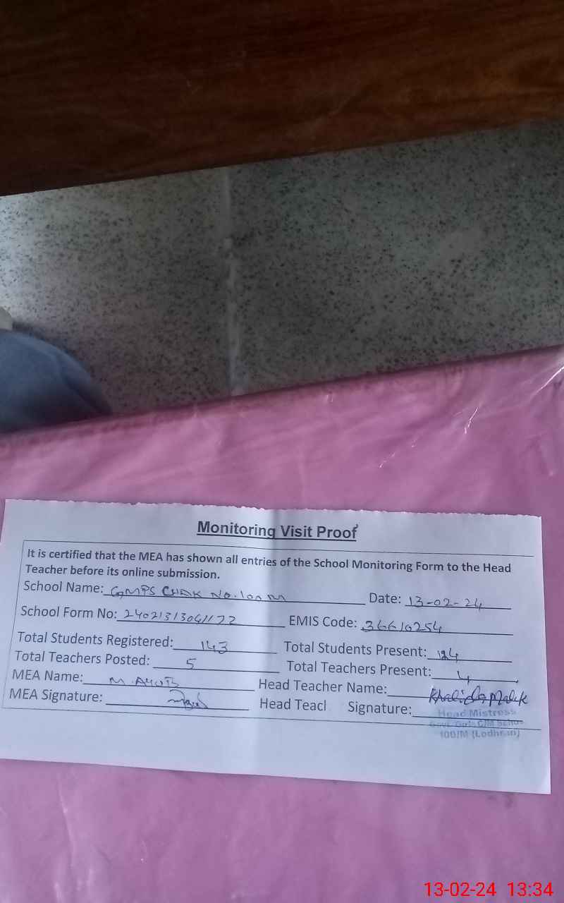 | EMIS Code: 36610254 | Name of School: GGCMS CHAK NO.100/M | |||