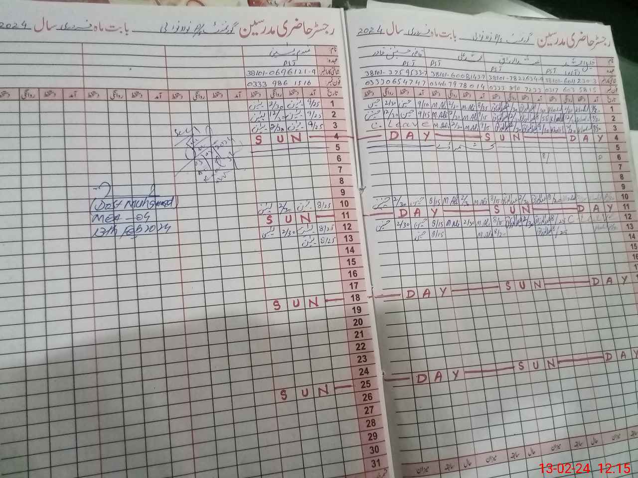 | CNIC | Full Name | Designation | R/C | Absence During Last Calender Month |