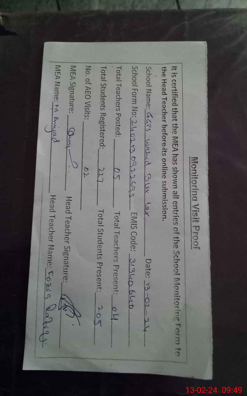 | EMIS Code: 31340640 | Name of School: GGPS WIHID BUX LAR | |||